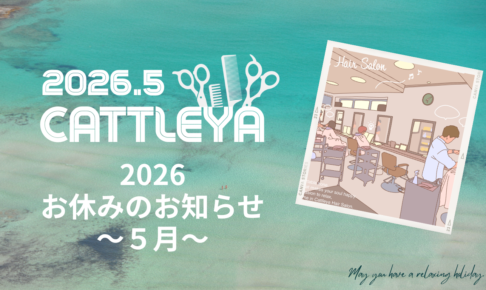 日頃よりカトレア美容室をご愛顧いただき誠に有難うございます。2026年5月、下記日程を都合によりお休みとさせて頂きます。 5/4(月)定休日5/5(火)お休み5/17(日)お休み5/18(月)定休日5/19(火)お休み5…